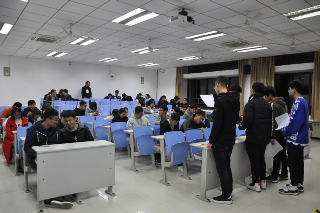 6点多,参赛的各个小组提前到达比赛地点进行签到,随后,相关工作人员为各个小组编号、分发试卷并向参赛人员强调比赛时的注意事项。本次初赛形式为四人组队,笔试答题,四十道选择题,二十道判断题。7点整,各个小组统一开始答题,首先,每个小组组员们分工合作,先将各自所背的题认真细心地答完。随后,对于自己不确定的题,选手们和自己的组员展开讨论,说出了自己的观点看法,集思广益,寻求最佳答案。当所有题目回答完毕,小组便可交卷离开。最后,监考人员收集整理考卷,并告知参赛者成绩公布时间与方式,取得优异成绩的小组将晋级决赛。