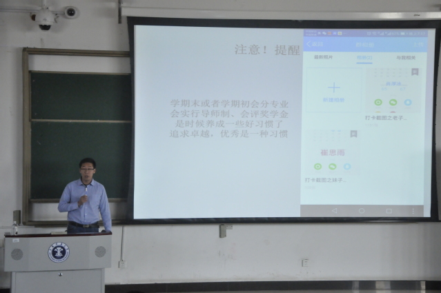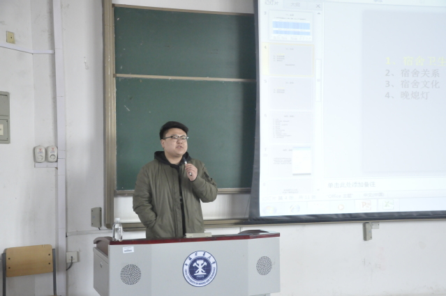 上午9:00,本次年级大会准时开始。会议伊始,李亮老师通过数据向大家展示了各班上学期的成绩,并结合上学期的成绩情况,从年级、班级和个人三个方面进行了学习情况的分析,对于表现良好的班级、个人给予了表扬,并期待大家在新的学期里能“百尺竿头,更进一步”。他强调,“合抱之木,生于毫末;九层之台,起于累土;千里之行,始于足下”,大一的基础学习是后续学习的基础,一定要把基础打牢。接着,他就宿舍卫生、宿舍关系、宿舍文化和晚熄灯相关情况进行了分析。对于表现优秀的卫生星级宿舍,他还精心地准备了一些小礼品进行了相应的奖励。随后,对于安全问题,他进行了着重强调,无论是宿舍安全、电信诈骗还是疾病预防问题,他列举了具体事例,希望引起大家的重视,保障好自身安全。同时对于补考、请假、缴纳保险、四六级报名、晚自习、早点名、从严请假等事宜,他也进行了安排和提醒。最后,李亮老师向大家介绍了新来的兼职辅导员腾毅老师,希望大家在今后的日子里能积极配合,共同为年级的建设出力。腾毅老师也现身说法,对大家进行了提醒和勉励,希望大家能追求卓越,将优秀做成一种习惯。上午10:00,本次年级大会圆满结束。
