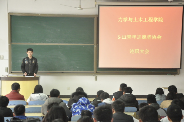 5.12青年志愿者协会于博一c204举办述职大会。15级兼职辅导员路铭、青协主任、各部门部长及干事参加了本次大会。