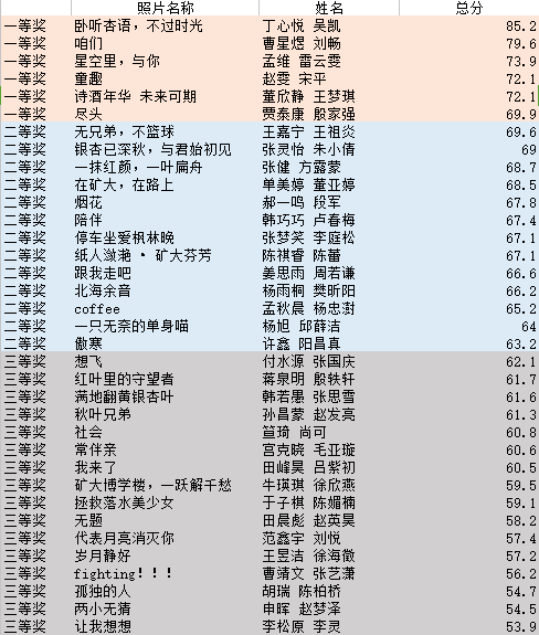 也为同学们精心准备了奖品。参赛小组也是极具创意,其中,有的小组以篮球为主题,拍摄出篮球场上的兄弟情深,有的小组则以学校美丽动人的落叶为素材,展现了矿大独特的美,彰显了矿大独特的魅力。12月24日,经过一个月的作品制作和评委们的公正评选,参赛小组都取得了心仪的成绩,此次比赛也圆满结束了。