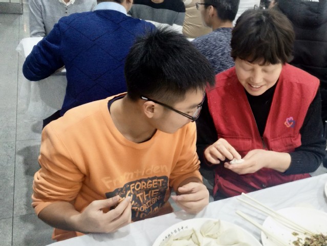 青年志愿者协会邀请的6位来自天使之家的“天使妈妈”和同学们一同包饺子。