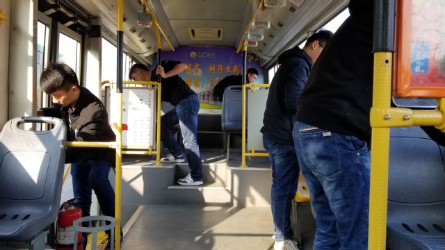 上午8点半,志愿者们在学校北门集合完毕,本次志愿活动正式开始。经过车站工作人员的指导和示范后,志愿者们了解了清洁公交车的各项相关事宜。随后,志愿者们被分为两个小组,每组轮流负责清扫一辆公交车。在工作人员的带领下,两组志愿者们拿着抹布、刷子等清洁工具开始对每次停站的公交车进行清洗。志愿者们先用拖把将上、下公交车的台阶和公交车外侧清理干净,再用抹布将车门、扶手等易积灰的地方擦一遍,最后用刷子着重擦拭一些顽固的印痕。志愿者们在清晨的寒风中重复着这几项清洁工作,轮流清扫了一拨拨进站的公交车。本次活动在三个小时的忙碌中圆满结束。志愿者们合影留念,并表示以后会更加珍惜公共卫生,共同营造一个良好的出行环境。