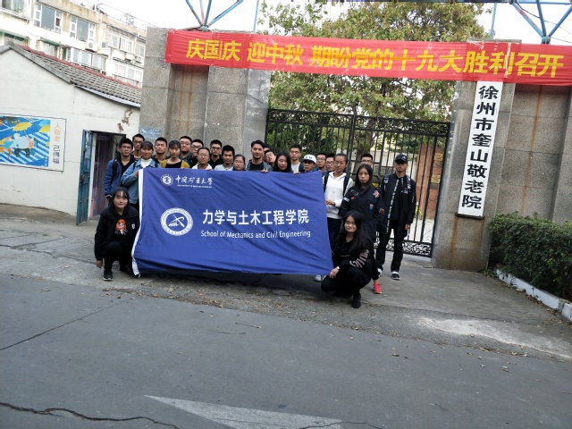 团委实践部和青协维权中心成员带领各班团干积极投身志愿活动,携带水果前往徐州市奎山敬老院做义工,为老人分发水果,陪老人聊天并为老人精心准备了歌舞节目,尽最大努力给老人带去欢乐,让老人们感受到来自矿大土木学子的关怀与温暖。