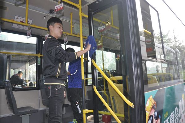 上午8点整,参加本次活动的尚恩服务分队的同学们在北门集合,紧接着,在尚恩服务分队校外行动部部长山生云的带领下,前往公交车停靠终点站,向公交公司的工作人员说明来意。公交车队的王队长对同学们的到来表示感谢,在给同学们提供了清洁工具后,带领同学们一同登上一辆公交车。王师傅给同学们亲自示范了清洁公交车的步骤,讲解清洁公交车时的各项注意事项。同学们仔细听完王队长的指导后,分成两个小组,分别负责游1路和39路公交车的清理工作。当一辆公交车驶入终点站时,同学们迅速进入公交车,倾倒垃圾,擦拭座椅,清洁死角,使得每个司机师傅也对同学们的热情和辛勤工作表示感谢。在此次的清理活动中,各个小组都清理了十余辆公交车,据悉,尚恩服务分队还会继续举行更多类似于公交车清理有意义的活动。