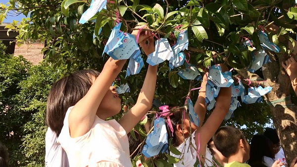 同学们将梦想挂在梦想树上