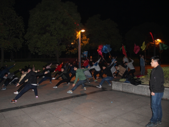 4月12日晚,表演方阵的同学们像往常一样于第一运动场门口集合整队,等待训练。晚九时许,训练正式开始。在方阵领队胡继强、左鑫同学的口令指挥下,表演方阵的同学们顶着寒风,认真而仔细地操练太极拳法的一招一式。澳门六合彩最准资料