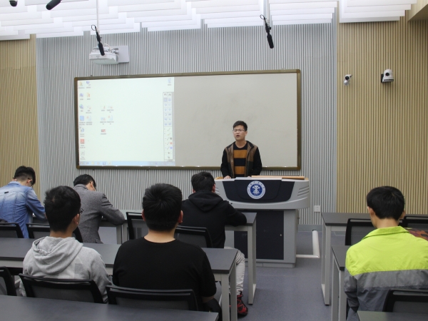 与会成员现场签到后,下午四点半,会议准时召开。会议分为三个环节:队长于子豪上台发言、各部门代表进行工作经验交流、曹鹏老师总结发言。首先,队长于子豪上台向全体成员介绍本次会议的流程,总结说明了本学期服务队在志愿服务各方面所取得的成绩及不足,指明了本学期接下来的工作重心和方向,鼓励成员为申办、承办更多的校级志愿活动而努力。接着,尚恩服务队的办公室、策划部、宣传部、行动部和繁星志愿部五个部门的代表依次上台发言。他们分别介绍了各自部门的成员组成以及部门的日常管理措施,向成员讲述了工作以来的心得体会,并展示了本学期各部门在尚恩服务队发起的志愿活动中所做的工作,包括徐州市图书馆共建和徐州市公交车清扫等大大小小的志愿活动的宣传策划、服务实践等。最后,曹鹏老师上台进行了本次会议的总结,指出尚恩服务队需要适当地对部门体制进行特色化变革,让尚恩服务队今后焕发新的活力与荣光。