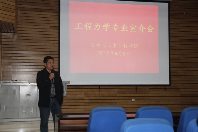 楼A108会议室召开了工程力学专业宣介会。本次宣介会由院团委书记倪涛涛老师主持,由工程力学专业系主任赵玉成教授与刘卫群教授主讲,院党委副书记张庆春老师出席了此次宣介会,2014级工程力学全体同学参加了本次专业宣介会。