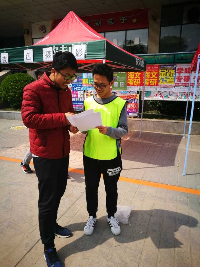 志愿者为同学们宣传活动细节