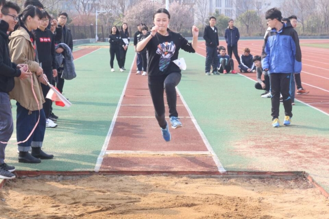 各年级各专业同学积极参加。在此次女子跳远比赛中,第一名由2016级工力三班饶思涵同学夺得。女子铅球比赛中,2016级工力二班薛姗姗勇夺第一。