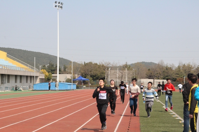 各专业的25个班级的男女混合4*400米接力比赛。两场比赛紧紧相随,让同学们目睹了田径团体赛的火热场面。