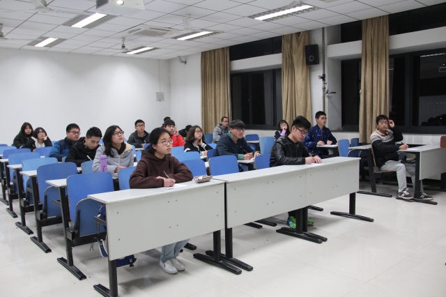 晚上七点之前,工作人员完成了对现场的布置,参赛选手在教室签到并且按照顺序入座。7点,比赛准时开始,本次比赛分为初赛和决赛。初赛结束后,工作人员进行现场阅卷,统计成绩,参赛选手中成绩进入前50%的可进入决赛。在决赛中,选手们积极配合工作人员的工作,通过现场抽签方式分组。随后,每组抽取已经组合好的题目作答,其中,题目分为必答题和选答题两部分。比赛中,选手们认真阅读PPT中的考题,在7点40分时,选手们完成了对必答题的作答。与初赛相同,工作人员仍然是采用现场阅卷的方式,以达到公平公正的效果。在统计成绩后随即进入选答题环节。在此环节中,一共有三道选答题,答对一道题得五分,答错则要扣3分,选手们都不甘示弱,积极举手选答,现场气氛十分激烈。8点30时,本次比赛结束。