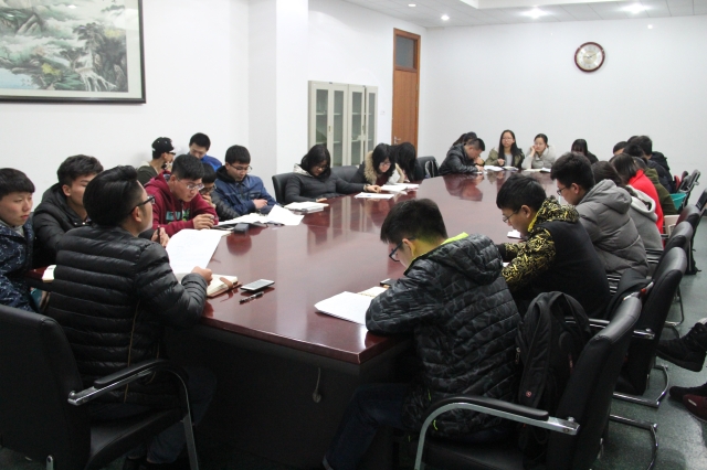 各班的团支书在建工楼A220教室内召开团委会议。会议总结了各班团支部书记近段时间的工作成果和经验,对日后的团日活动考核提出了一系列具体的、切实的要求。