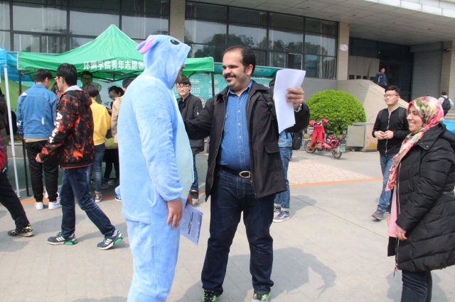 与国际友人互动