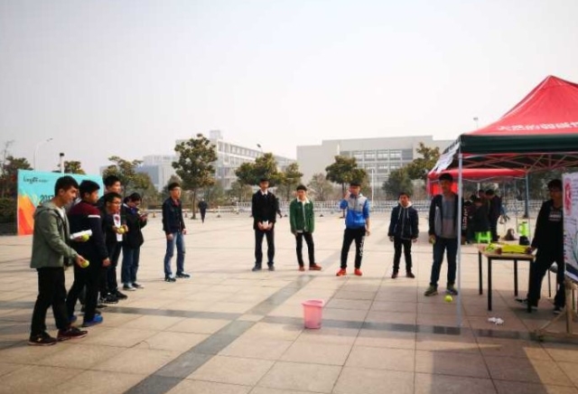 上午10点,游戏专区的青协环建部部员们就按照部长王文富的安排开始搭建帐篷、准备游戏道具、奖券等。参与者们可以在环建部负责的嘉年华游戏专区的帐篷内进行“扔网球”游戏,同时能够获得一定数量的兑奖券,以此来兑换相应奖品。参与者在游戏开始时可获得三个网球,将网球掷入桶中即为成功,投入两枚网球及以上将可获得兑奖卷。有趣新颖的游戏吸引了许多同学前来咨询,不久帐篷前就排满了参与游戏的人,活动现场充满笑声。