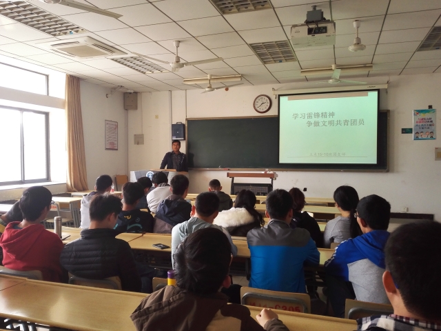 3月11日下午,土木15-10班在博四C204教室举办了“学习雷锋精神,争做文明共青团员”为主题的团支部会议,团支书刘宁更加深入地向同学们讲解了雷锋精神,并对今后的志愿服务活动做了进一步安排。强调今后还将继续开展关爱老人、关爱留守儿童、清洁校园等一系列志愿活动。