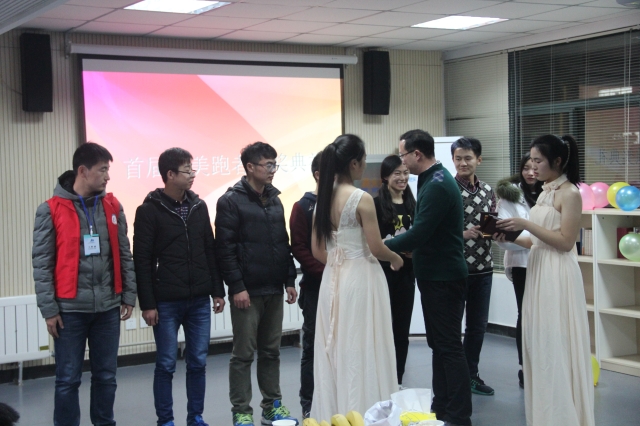经过前期线上线下的热烈宣传,同学们热情高涨,积极参与本次比赛。赛后经过公平的评选,选出了获得一、二、三等奖若干人。晚上7时许,大厅已座无虚席,马拉松协会为大家准备了水果、饮料等。接着一段劲爆的开场舞点燃了现场气氛,随后主持人上台致开场辞,颁奖仪式正式开始。首先由校党委副书记曹德欣教授发表讲话,肯定了校马拉松协会这一年来取得的成绩,同时也对协会成员提出了更高的要求,希望他们在接下来的工作中取得更优异的成绩,把校马拉松协会办的更好。接下来是颁奖礼,由曹书记等学校领导为获得一、二、三等奖的同学们颁发奖状并合影留念。