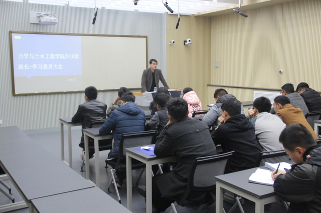 2016级辅导员曹鹏主持,2016级各班班长和学习委员积极参加了此次大会。