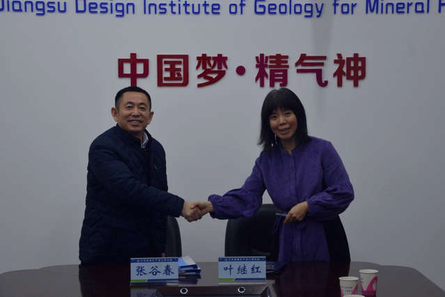 1月7日,在院长叶继红教授、党委书记吕恒林教授带领下,院班子和教师代表一行15人到江苏地质矿产设计研究院洽谈科研合作,并签订产学研实习实践基地协议。