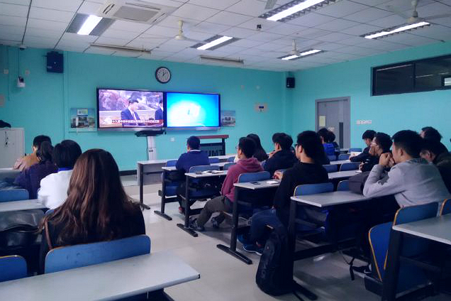党委组织师生员工以电视、网络等多种方式集体或自行收看了新一届中共中央政治局常委与中外记者见面会的现场直播。