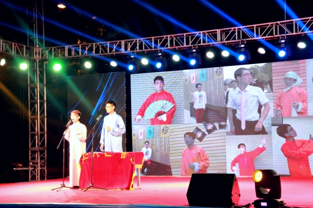 党委副书记张庆春老师上台致辞,他表达了对顺利完成学业,即将奔赴祖国各地毕业生的美好祝愿。据悉,本次晚会共分为“相逢是首歌”、“在迷雾中前行”、“与君同舟渡”和“此去几时还”四个环节,包含舞蹈、相声、话剧、魔术、器乐演奏等多种表演方式。其中,相声《我的大学生活》诙谐幽默地演绎了同学们生活中的情景;歌曲《凉凉》为观众再现了夜华和白浅的爱情故事;魔术《魔法奇迹》将晚会现场推入高潮;话剧《毕业了,对不起》流露出浓浓的不舍之情,弥漫着毕业季离别的伤感。最后,晚会在2013级辅导员老师骆奕、赵石强和沙猛猛合唱的《一生有你》的歌曲中落下帷幕。