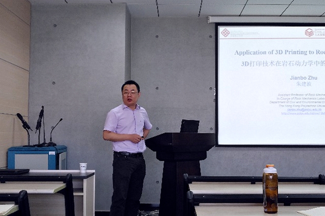作学术交流。5月25日上午9:00,朱建波博士在深部岩土力学与地下工程国家重点实验室303报告厅作了题为“3D打印在岩石动力学中的应用初探”的学术报告,学校相关专业的50余名师生聆听了报告。报告会由澳门六合彩最准资料