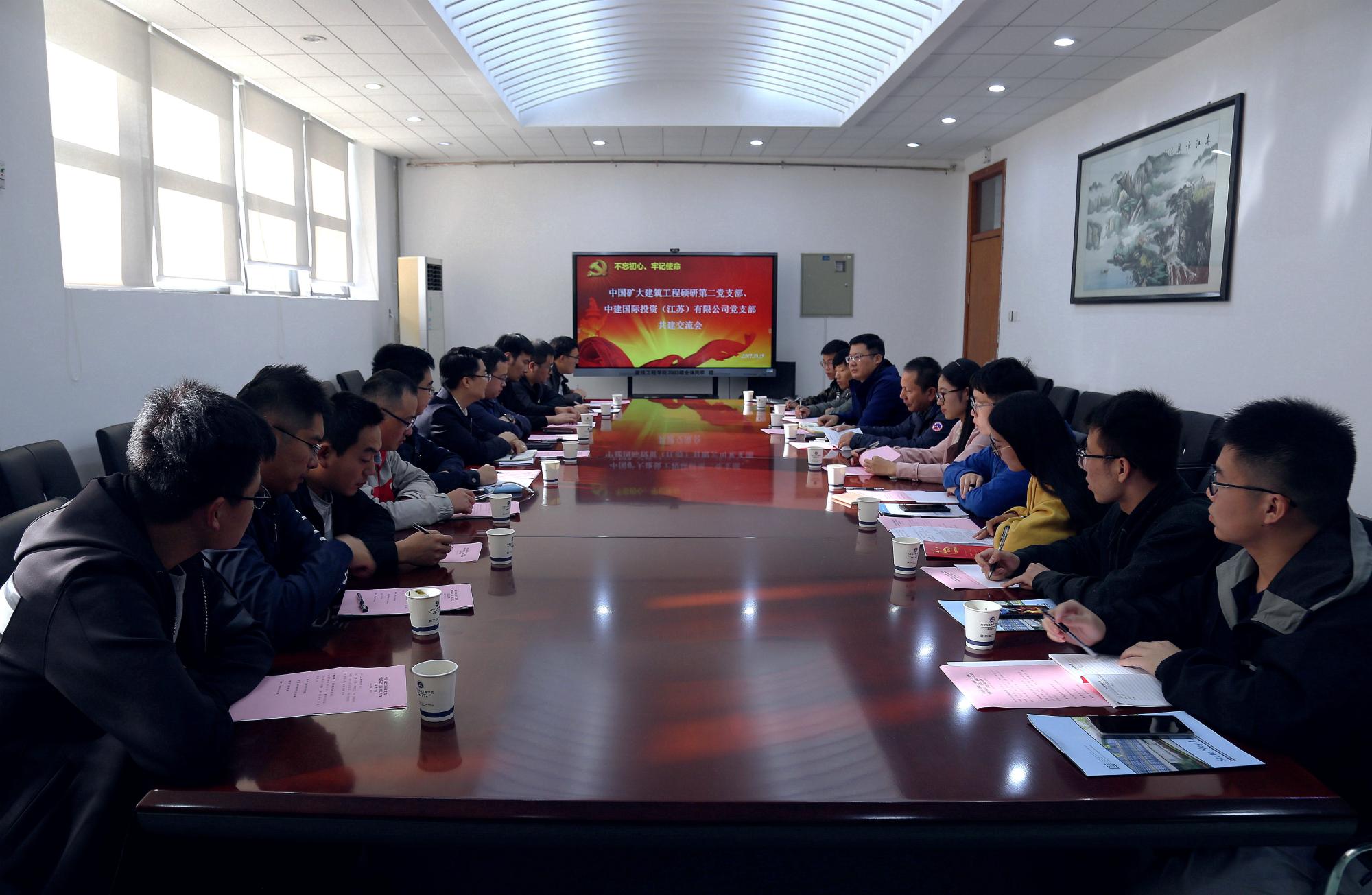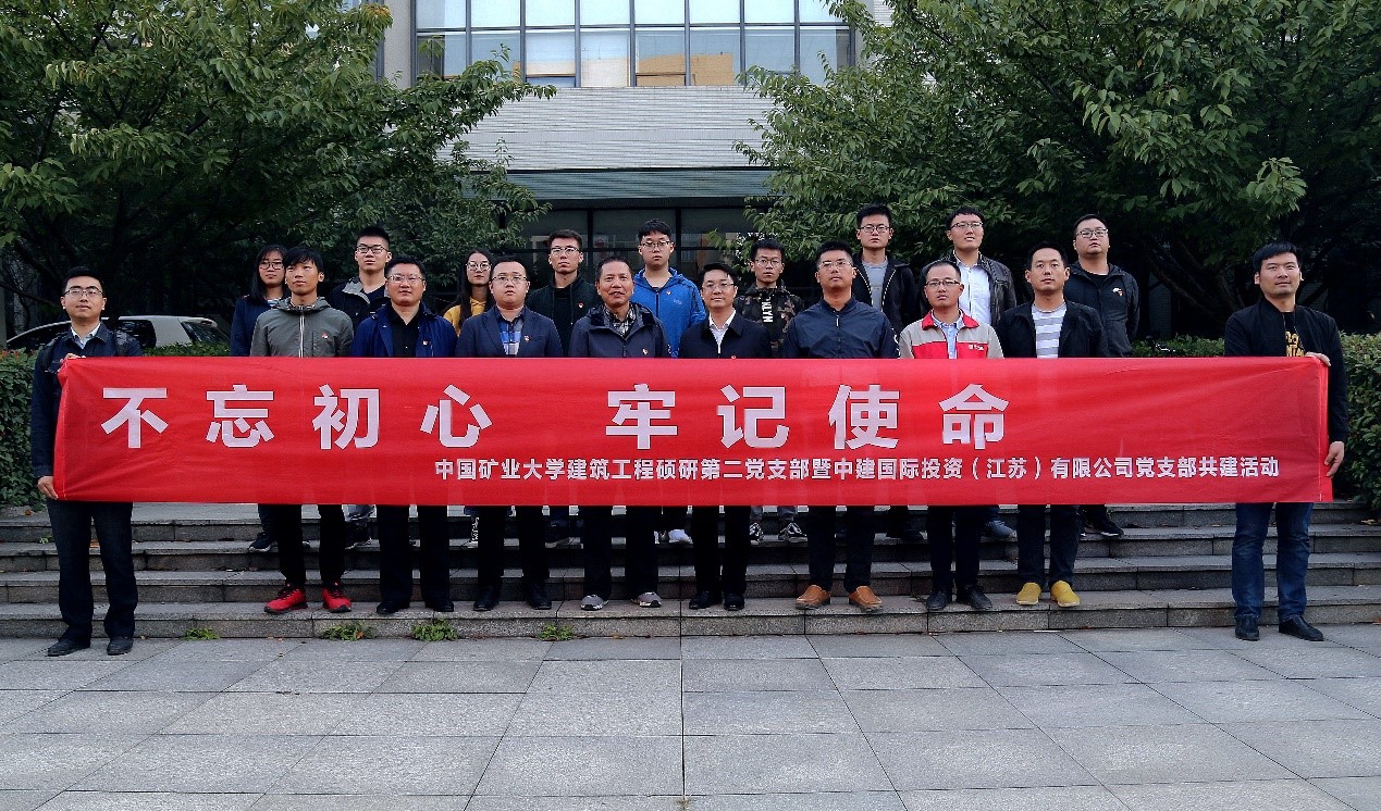 党委组织建筑工程硕研第二党支部同中建国际投资(江苏)有限公司党支部在矿大南湖校区开展共建交流活动。