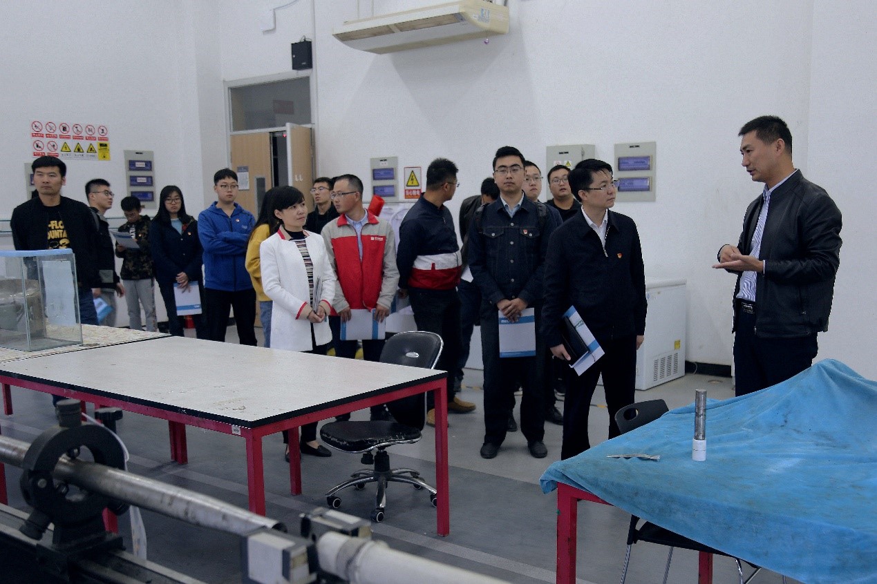 学生党建指导老师刘晴的陪同下,在深部岩土力学与地下工程国家重点实验办公室主任赵春晓老师的讲解下参观了实验室。