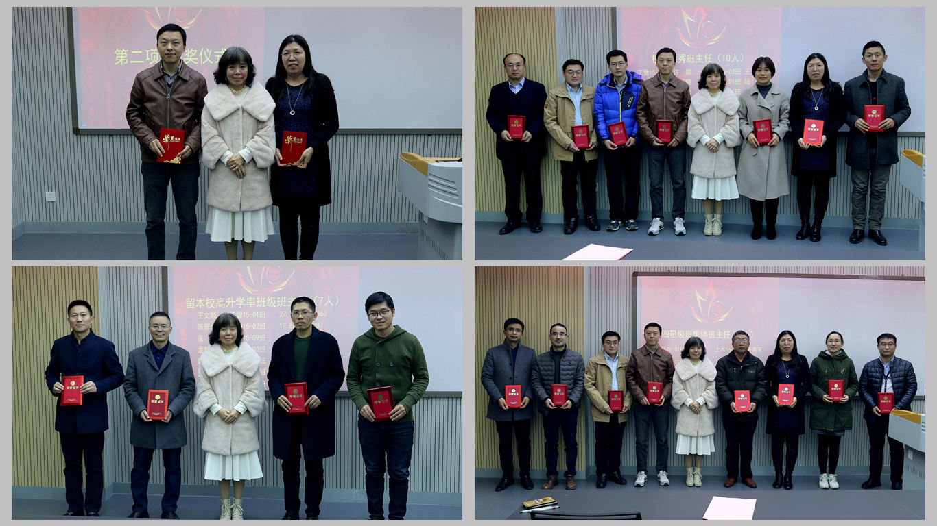 张庆春副书记宣读了表彰决定并重申了班主任职责,希望班主任能强化“一线意识”,到学生中去、了解学生、引导学生健康成长。他还从学生政治思想与意识形态、重点学生关注、素质能力培养、提升认同感和荣誉感、骨干队伍建设等方面对班主任们提出了工作要求。