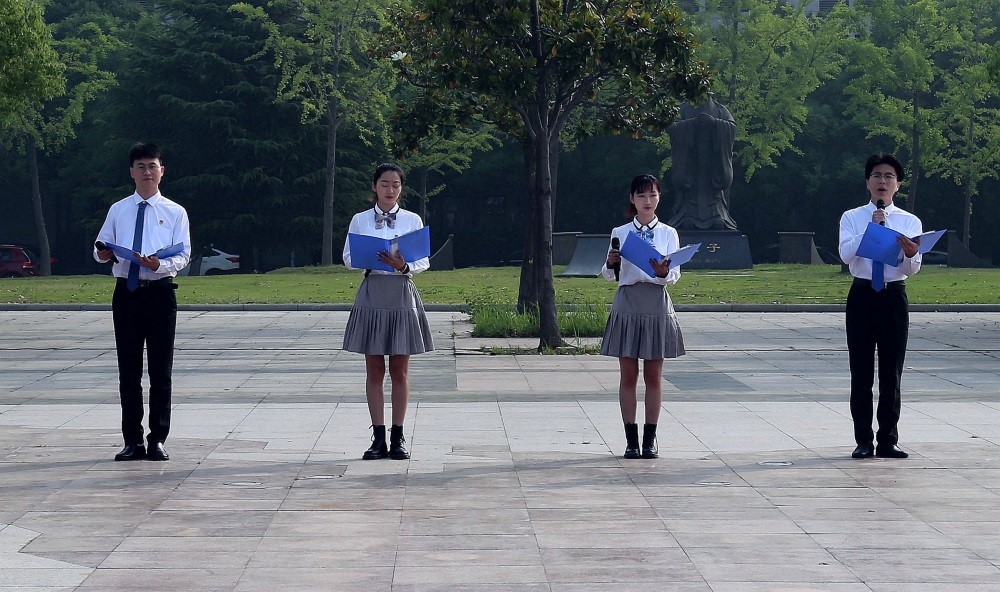 工程管理2018-2班王天昕、土木类2019-6班彭奕昕等四名学生代表深情献词,以青春为学校生日献上赞礼,用成长为母校诞辰谱唱颂歌。