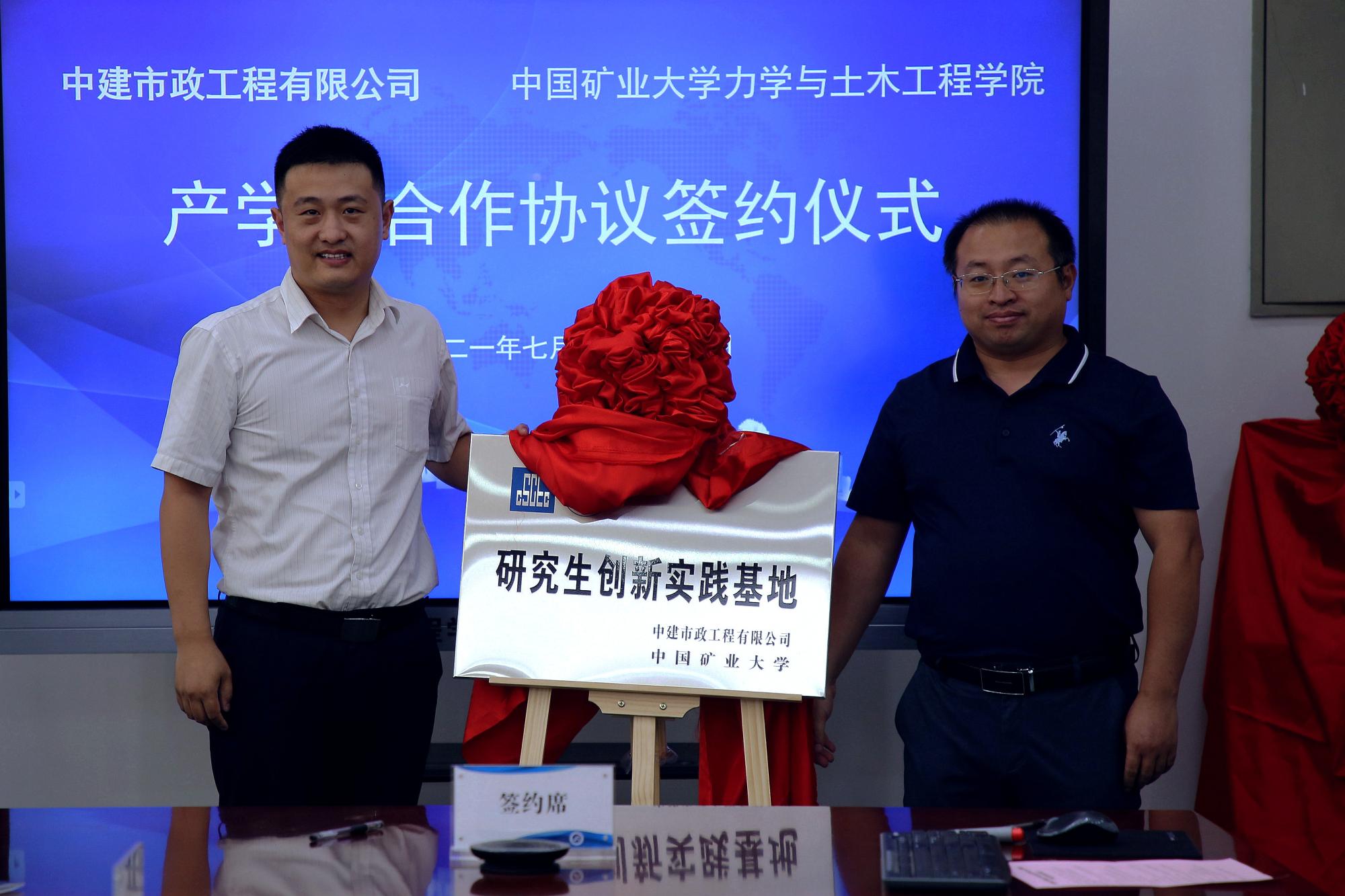 签约仪式上,马占国院长和李延才副书记代表双方共同签订产学研合作协议并为“产学研合作基地”揭牌。杨圣奇副院长和牛雨晨经理、周劲锋副院长和张亮亮总经理分别为“研究生创新实践基地”、“校外实习基地”揭牌。