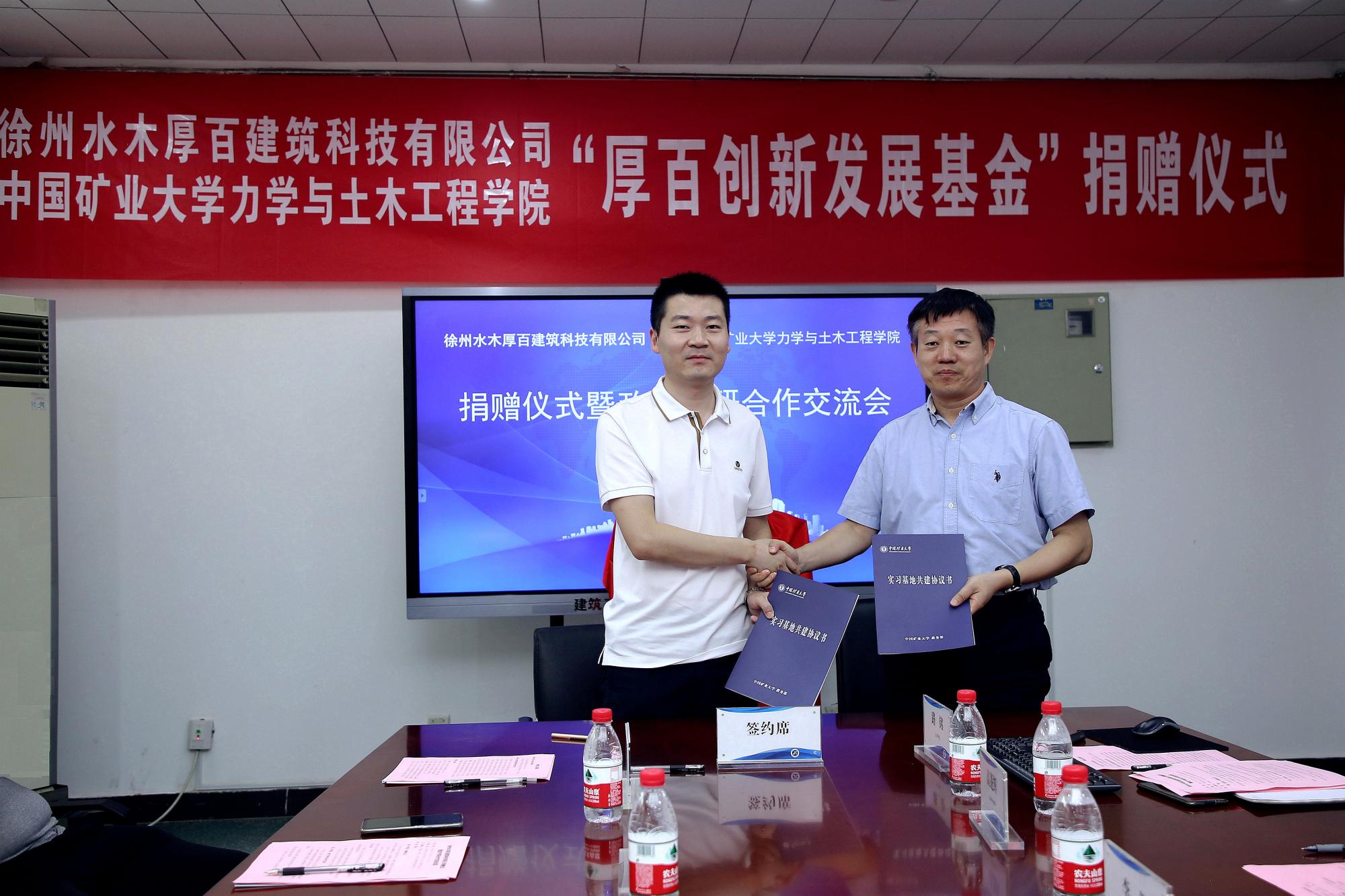捐赠仪式上,对外合作与发展处处长、教育发展基金会秘书长钟晓东代表学校与捐赠单位徐州水木厚百建筑科技有限公司总经理郭杨亮共同签订了捐赠协议,并颁发了捐赠证书。马占国院长代表澳门六合彩最准资料