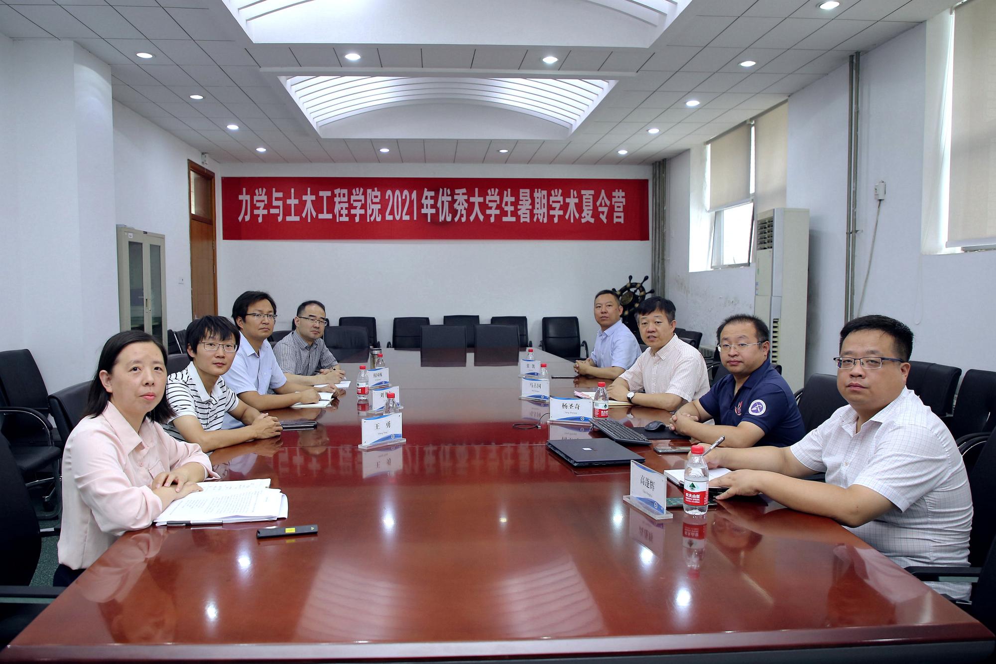 在A220会议室举行2021年优秀大学生暑期学术夏令营开营仪式,考虑到疫情影响,此次夏令营通过线上方式举行。院长马占国教授、副院长杨圣奇教授、各系所主任/副主任张凯教授、高蓬辉教授、倪国栋教授、王勇副教授、刘书奎副教授在现场参加了开营仪式,部分院领导、导师代表等通过在线方式参加,开营仪式由研究生工作办公室主任史丹老师主持。