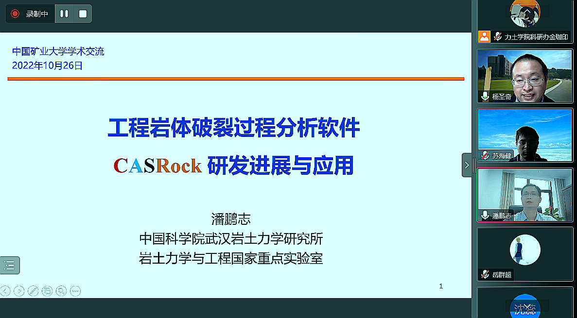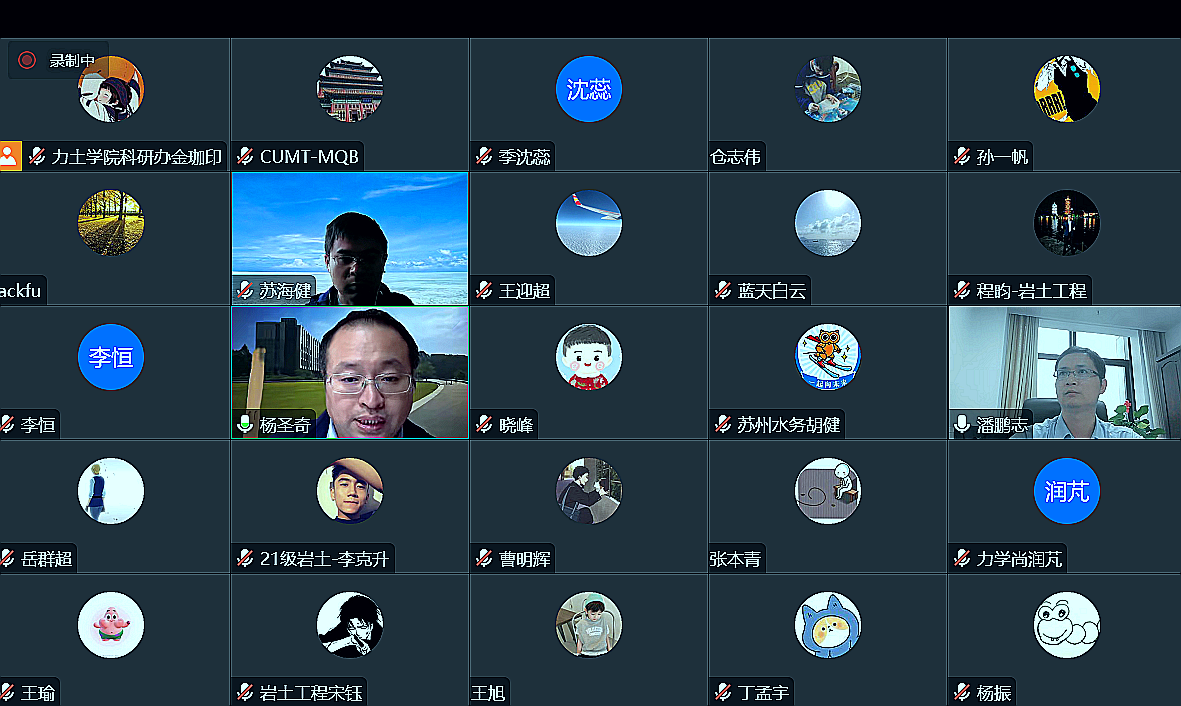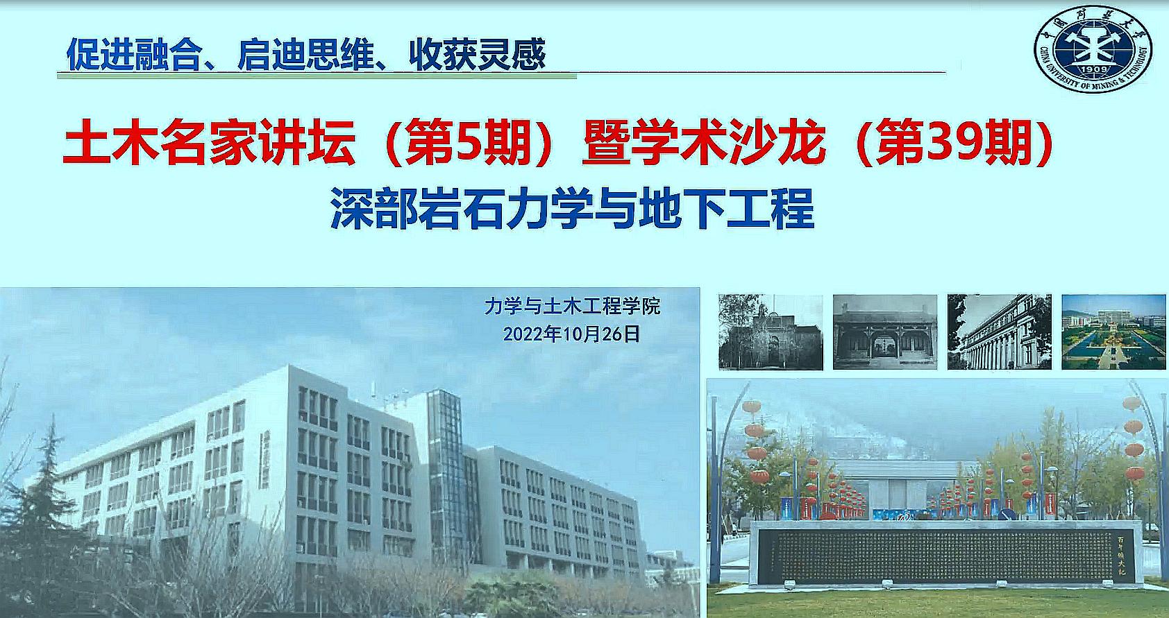 线上组织召开土木名家讲坛(2022年第5期)暨学术沙龙(第39期),共计70余名师生参会,共同探讨深部岩石力学与地下工程的前沿科学问题,土木名家讲坛由副院长杨圣奇教授主持,学术沙龙由苏海健副教授主持。