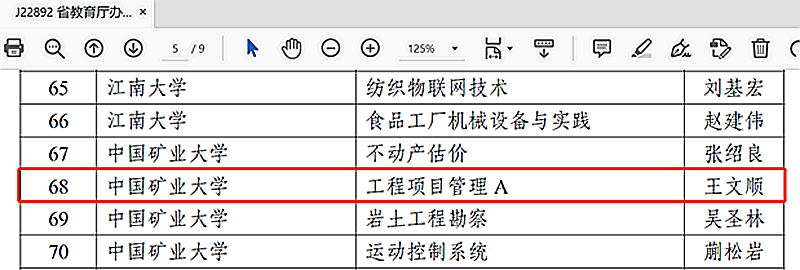 工程管理专业的《工程项目管理A》课程获批立项,课程负责人为王文顺教授,工程管理所王莉、乔亚宁、许娜、倪国栋、鄢晓非、谷甜甜等教师参与建设,碧桂园控股有限公司徐州分公司和徐州市新盛投资控股集团有限公司联合共建。