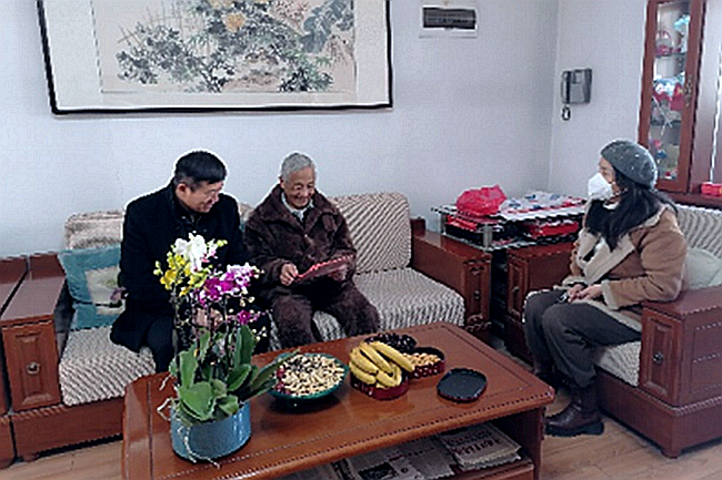 党委书记马占国在党政办孟燕、齐燕军陪同下前往部分在徐退休老教师家中走访慰问,代表全院师生向老教师们致以诚挚问候和美好祝福。