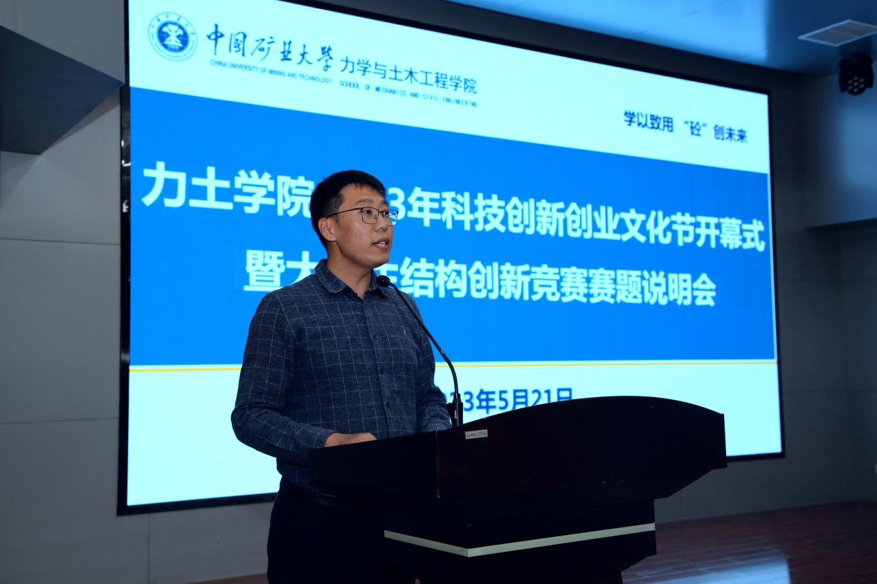 大学生科技创新协会主席李文磊为参与本次全国大学生结构设计竞赛校选赛的同学们解读赛题,讲解了模型尺寸要求、加载方式等,并为同学们答疑解惑,帮助同学们在校选赛中取得好成绩。