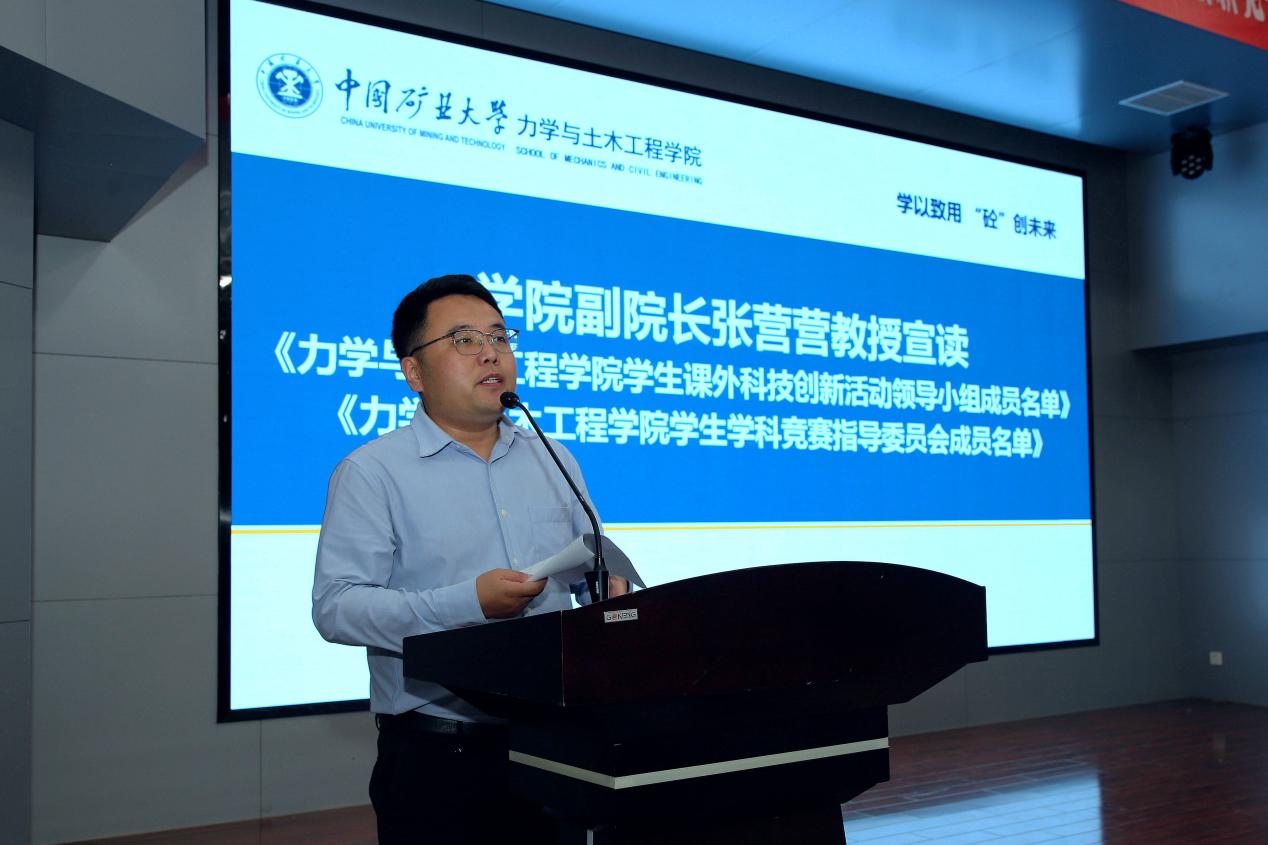 教师代表高蓬辉教授、学生代表薛恺文依次上台发言。教师代表高蓬辉教授表示,科技推动社会进步,青年是未来的科技之星。他建议同学们在科创活动中保持自信与勇气,培养团队合作精神,不断追求创新与进取,在科技的舞台上放飞自我,展现出独特的创造力和想象力。学生代表薛恺文分享了自己从第一次接触科创竞赛以来的坎坷与成长。他表示,投身科创,既要有满腔的热情和坚定的毅力,更要有稳固的知识基础和过硬的专业素养,没有数年如一日地坚守和沉淀,就不会有站在领奖台上的风光与靓丽。