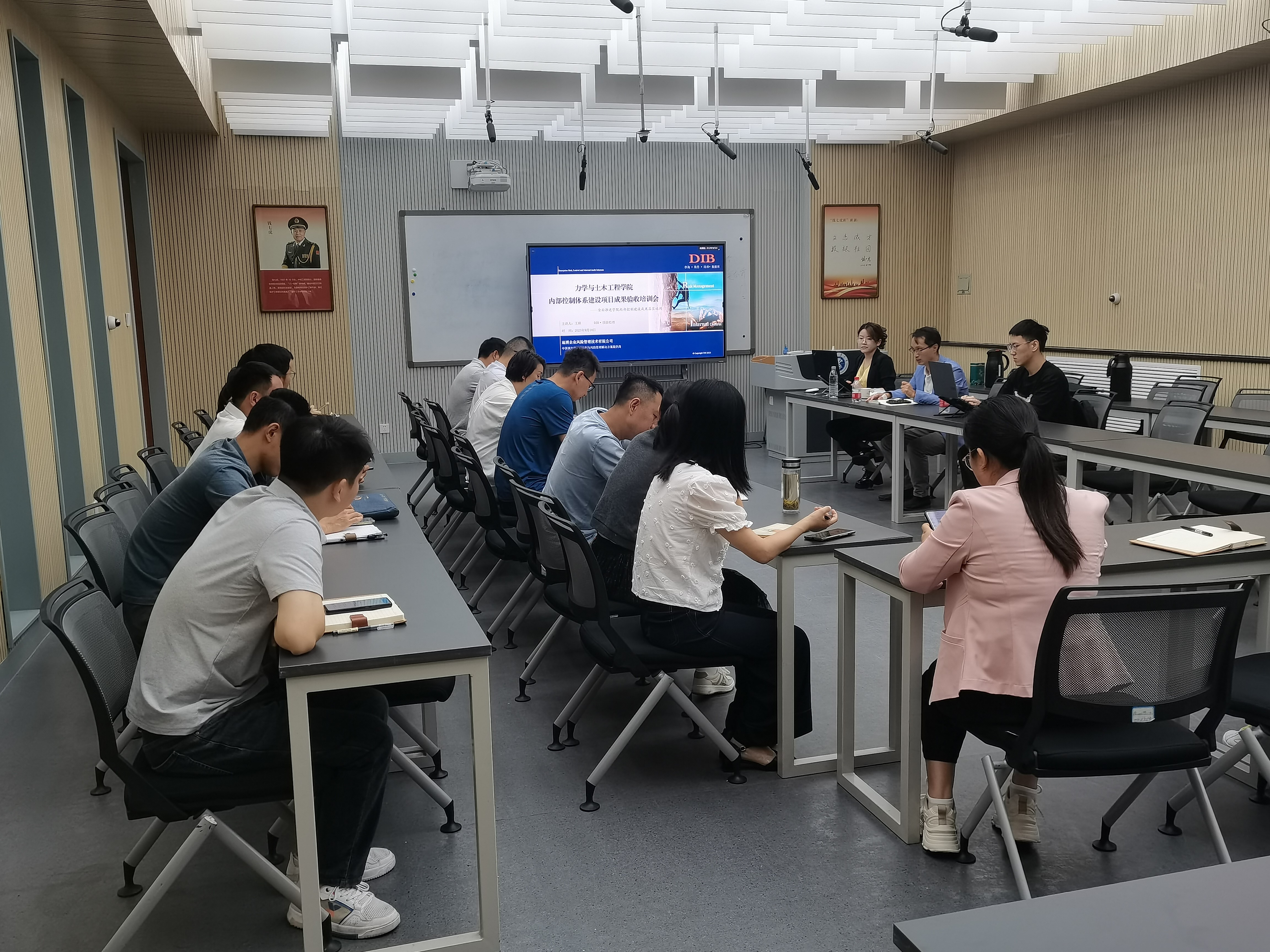 在B201会议室召开内部控制体系建设项目成果验收培训会。财务处副处长冉洪涛、副院长周劲锋、院机关全体人员及实验中心有关人员、迪博咨询师参加验收培训会。