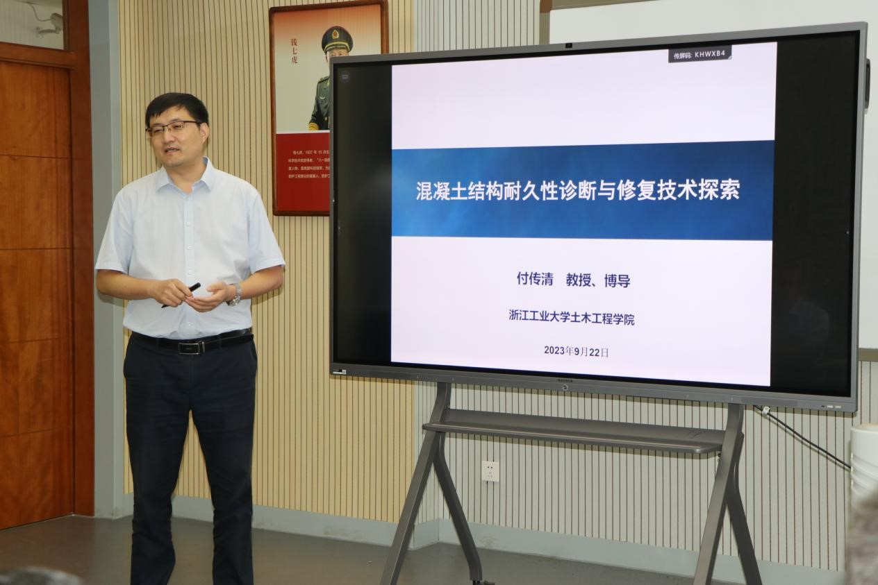 组织召开土木名家讲坛(2023年第十二期),特邀浙江工业大学健行特聘教授、浙江省杰青付传清教授作《混凝土结构耐久性诊断和修复技术探索》报告,澳门六合彩最准资料