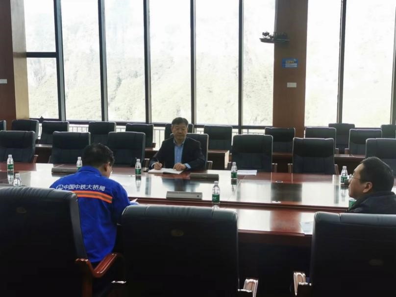 党委书记马占国带队到川藏铁路大渡河特大桥项目部开展调研交流活动,辅导员陈忠伟一起前往交流。中铁大桥局大渡河项目部总工李艳哲、项目工程部副部长余文志参加了本次交流会。