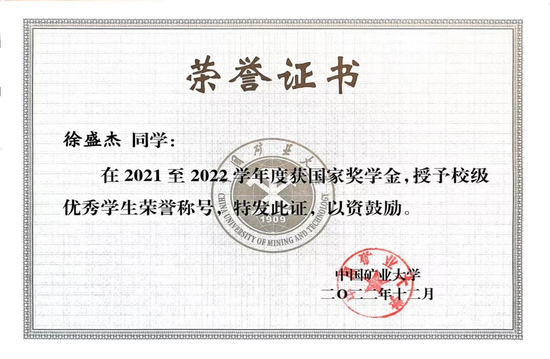 徐盛杰学习成绩优异,勇于创新,连续两年综合成绩排名专业第一,获校级“优秀学生”、基础课“学习之星”等荣誉称号。他还积极参加各类科创比赛,曾获国际大学生数学建模竞赛H奖和江苏省工程管理、创新创业与实践大赛三等奖等奖项二十余项。