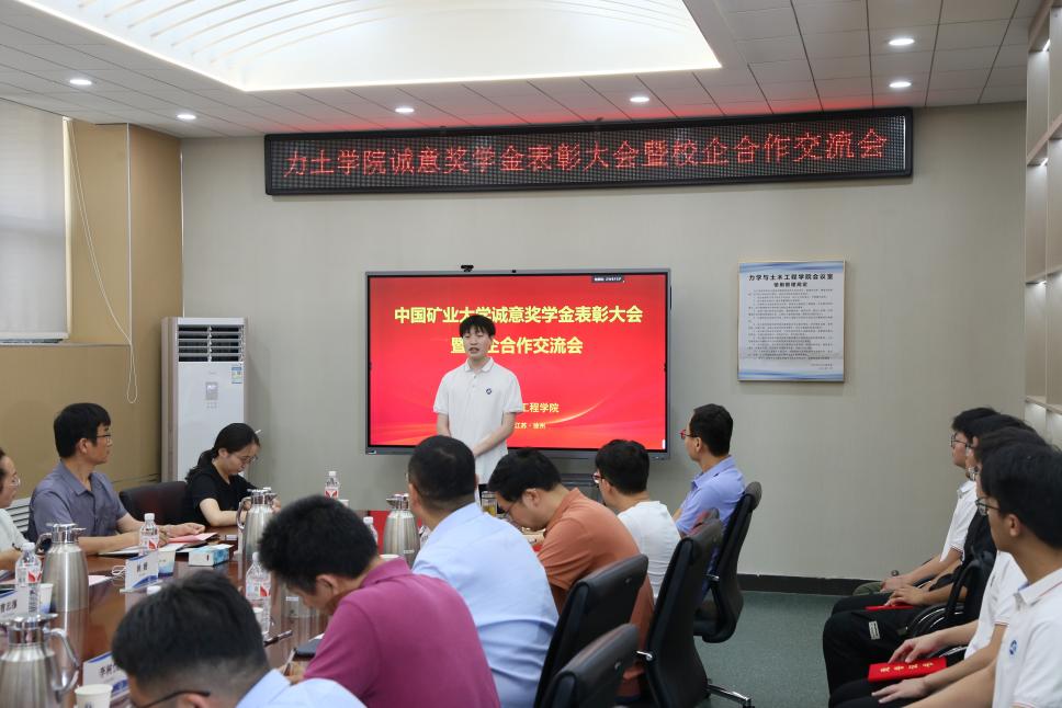 于A220报告厅举行诚意奖学金表彰大会暨校企合作交流会。江苏诚意集团公司党委书记、总经理曹永,助理总经理曹忠摞,总工、江苏诚意工程技术研究院副院长黄玉楼,人力资源部部长姚姗,江苏诚意工程技术研究院研发中心主任汤国芳,澳门六合彩最准资料