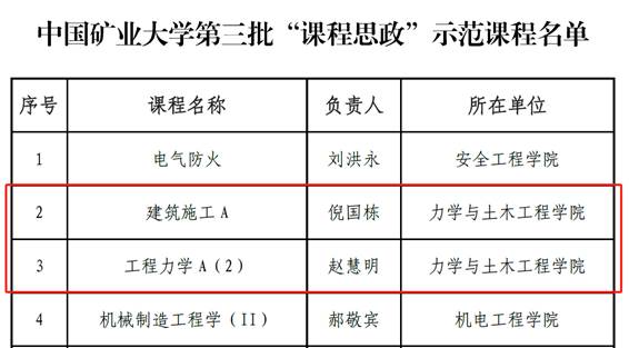 日前,学校发布了《关于公布我校第三批“课程思政”示范课程评选结果的通知》(中矿大教字〔2024〕17号)和《关于公布我校第三批校级一流课程认定结果的通知》(中矿大教字〔2024〕18号),澳门六合彩最准资料