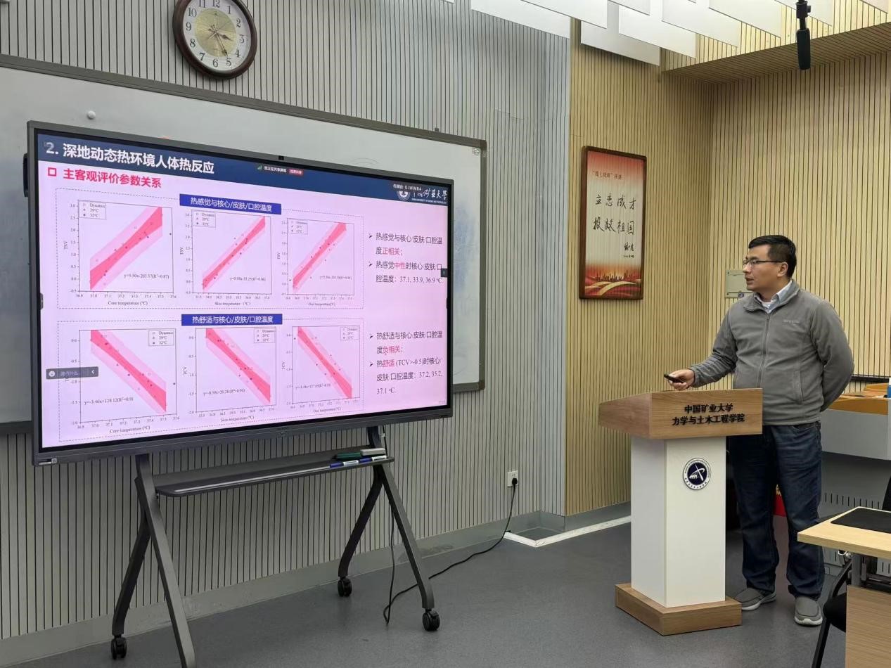 随后,王义江以《深地环境人体热反应与主被动热防护研究》为题,从深地环境的特点出发,深入探讨了人体在深地环境下的热反应机制,以及如何通过主被动热防护手段来保障人员的安全与舒适。报告不仅涵盖了理论层面的研究,还结合了实际应用案例,使与会者对深地环境人体热防护有了更加全面和深入的理解。