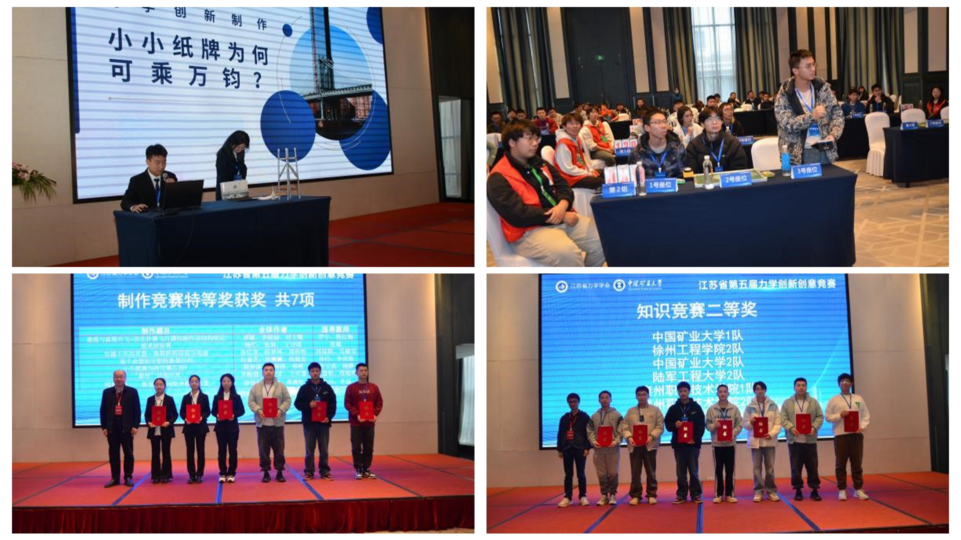 、深地工程智能建造与健康运维全国重点实验室和江苏省应用力学(中国矿业大学)中心承办,江苏东华测试技术股份有限公司、秦皇岛市协力科技开发有限公司赞助的江苏省第五届力学创新创意竞赛在江苏省徐州市举办。江苏省力学学会副理事长邬萱、副秘书长张姝姝,江苏省力学学会科普工作委员会主任委员王立峰教授、副主任委员赵玉成教授、副主任委员兼秘书长孙伟副教授等学会领导和来自江苏省高校的评审专家、嘉宾及省内参赛师生近100人参加了会议。
