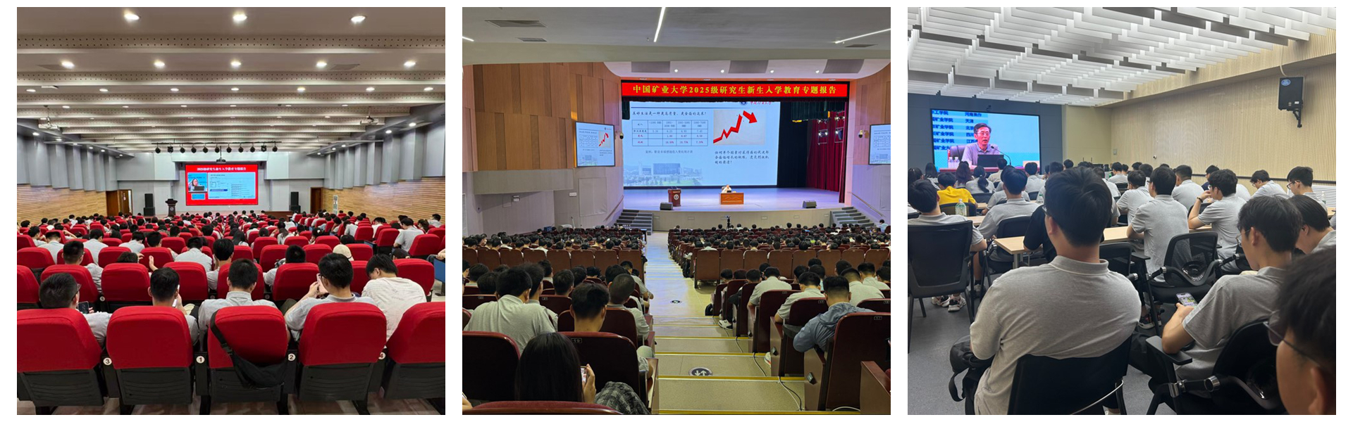 学生分别在主会场和分会场,系统聆听围绕思想政治、研究生阶段学习生活、矿大精神与文化传承、图书馆信息资源利用和校园安全管理的报告内容。
