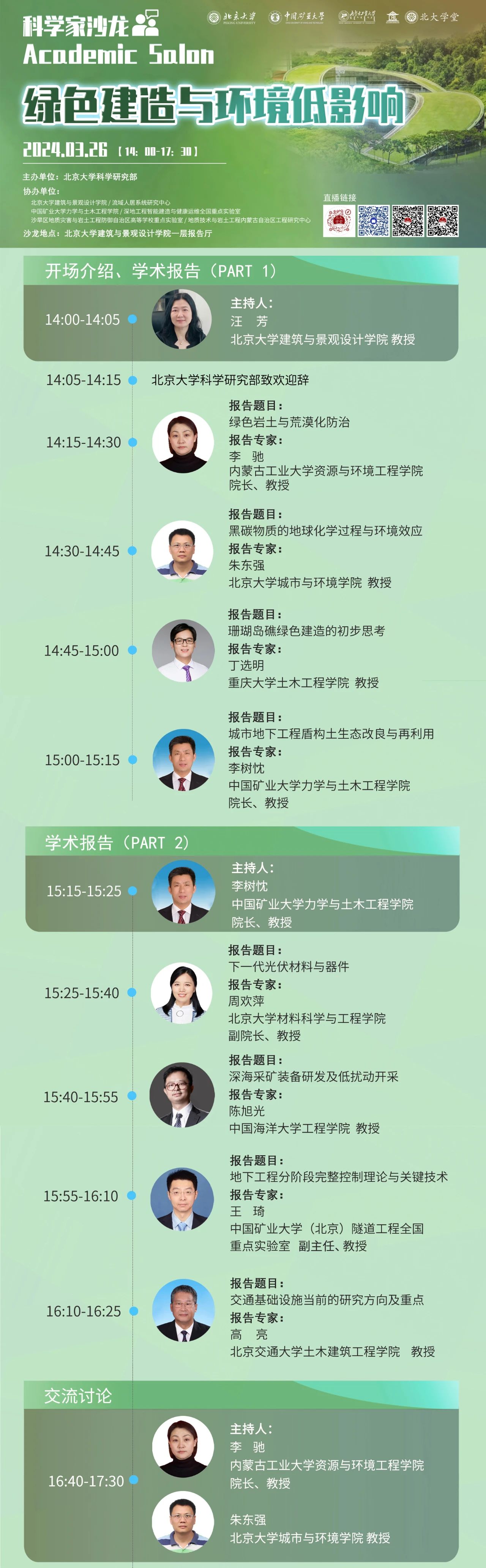 2024年3月26日,“绿色建造与环境低影响”科学家沙龙活动将由北京大学科学研究部主办,北京大学建筑与景观设计澳门六合彩最准资料