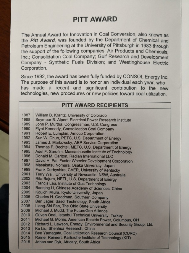 2018年国际匹兹堡煤炭会议由我校承办。根据会议惯例,每年国际匹兹堡煤炭会议将表彰1名在全球煤炭转化领域做出杰出贡献的学者,由大会颁奖委员会授予Pitt AWARD(煤炭转化创新奖)。根据大会安排,拟在我校推荐1名学者作为2018年度Pitt AWARD候选人。现将有关工作通知如下: