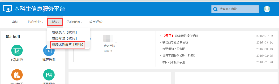 方法1可以较快的设置所有没有输入成绩前的成绩项目比例,如果有成绩后,只能用方法2进入要修改的教学班录入界面修改。